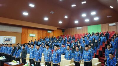 Setelah pelantikan Kepala Kantor Kemenag OKI H. Syarip, langsung membagikan Surat Keputusan ( SK ) kepada PPPK yang baru dilantik. (Abbas PPWI).