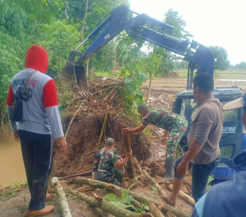 Anggota Koramil Tipe B 0802/11 Bungkal Ikuti Karya Bakti Benahi Tanggul Jebol