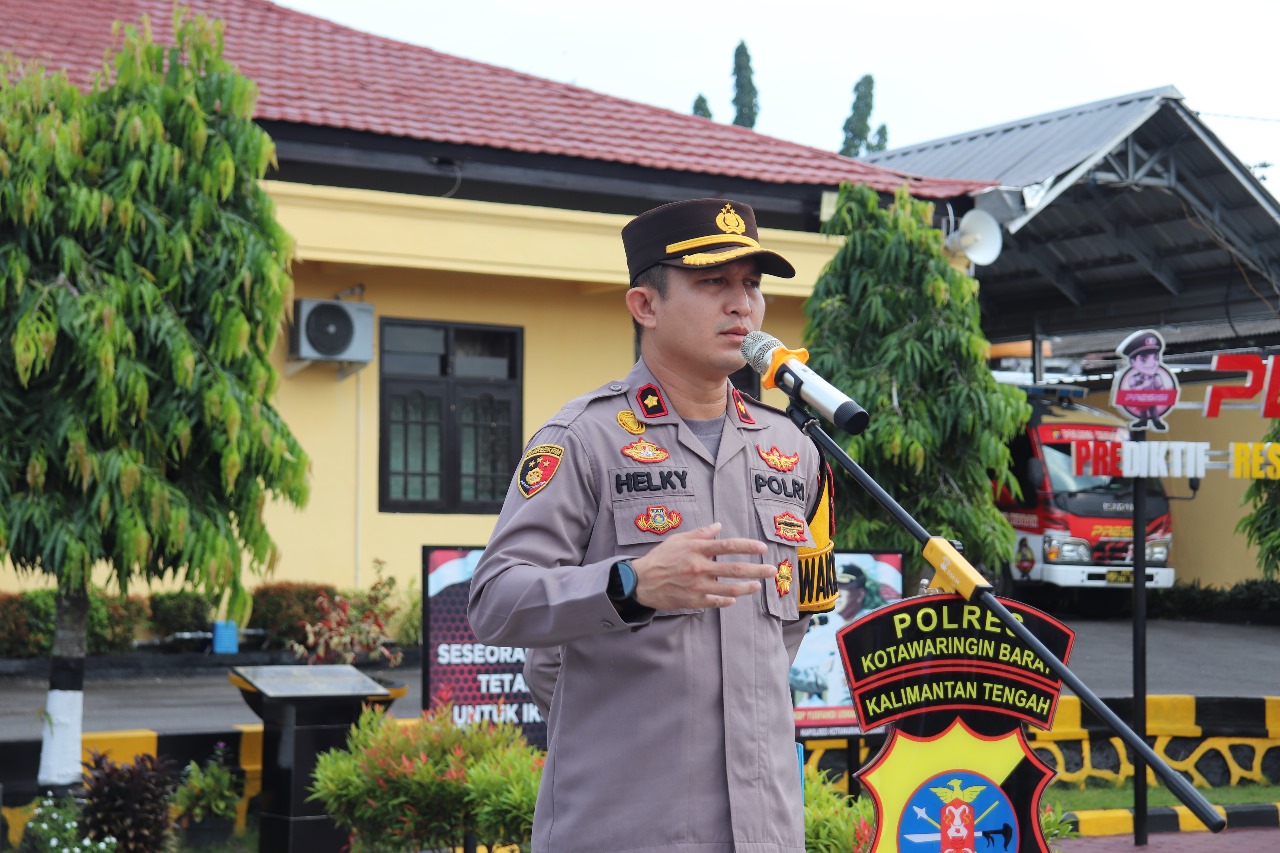 Wakapolres Kotawaringin Barat (Kobar) Kompol Wihlemus Helky, S.I.K., memimpin apel pagi rutin di halaman Mapolres Kobar, Kamis (18/7/2024) pagi.