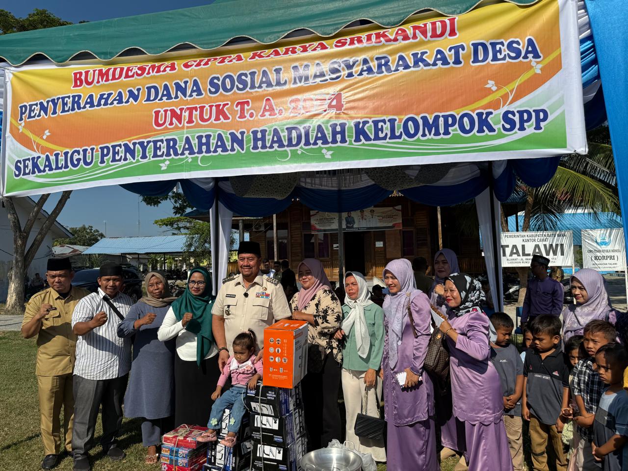 Bupati Batu Bara sambut Kegiatan Bumdesma Cipta Karya Srikandi LKD Talawi & Datuk Tanah Datar dalam penyerahan hadiah Kelompok simpan pinjam Perempuan(SPP) dan Dana Bantuan sosial anak sekolah Surplus TA 2024.