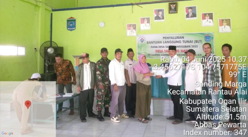 Untuk desa sanding marga kecamatan rantau Alai penerima bantuan 28 orang dengan uang sebesar Rp. 900.000 ( sembilan ratus ribu rupiah ) kepala desa kailani tegaskan bahwa di desa kami tidak ada pemotongan dana BLT satu rupiah pun dan kami tidak pernah meminta imbalan.