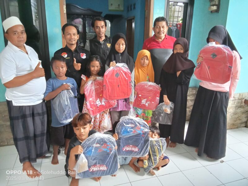 Aktivis anak muda pribumi Tangerang Junior Provinsi Banten dari Lembaga Swadaya Masyarakat (LSM) Dewan Pimpinan Cabang (DPC) Tangerang komunitas pemberantasan korupsi (KPK) Nusantara mengadakan santunan kepada 20 anak Yapi dan kaum Dhuafa di Kantor Sekretariat KPK Nusantara Desa Bojong pada Senin 3 Maret 2025.