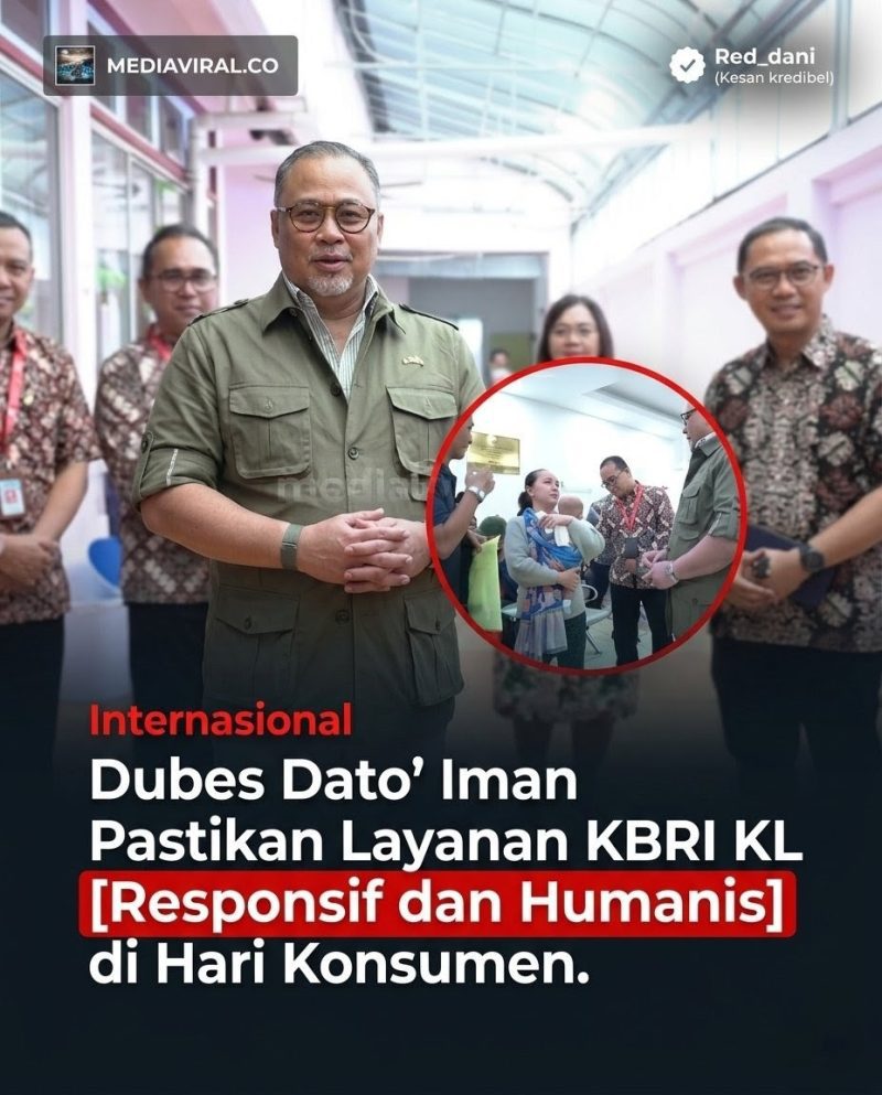Menyambut Hari Konsumen Nasional, Duta Besar Republik Indonesia untuk Malaysia, Dato’ Indera Iman Sudarwoto, melakukan peninjauan langsung terhadap pelayanan konsuler di KBRI Kuala Lumpur. Langkah ini dilakukan untuk memastikan kualitas pelayanan publik bagi Warga Negara Indonesia (WNI) tetap terjaga secara prima dan responsif.