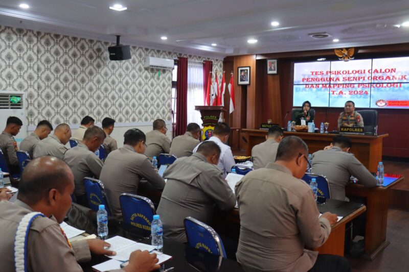 Tim Psikologi SDM Polda Kalteng yang di ketuai oleh Iptu Astrid menggelar kegiatan tes psikologi bagi personel Polres Kotawaringin Barat (Kobar) yang akan memegang senjata api (senpi).