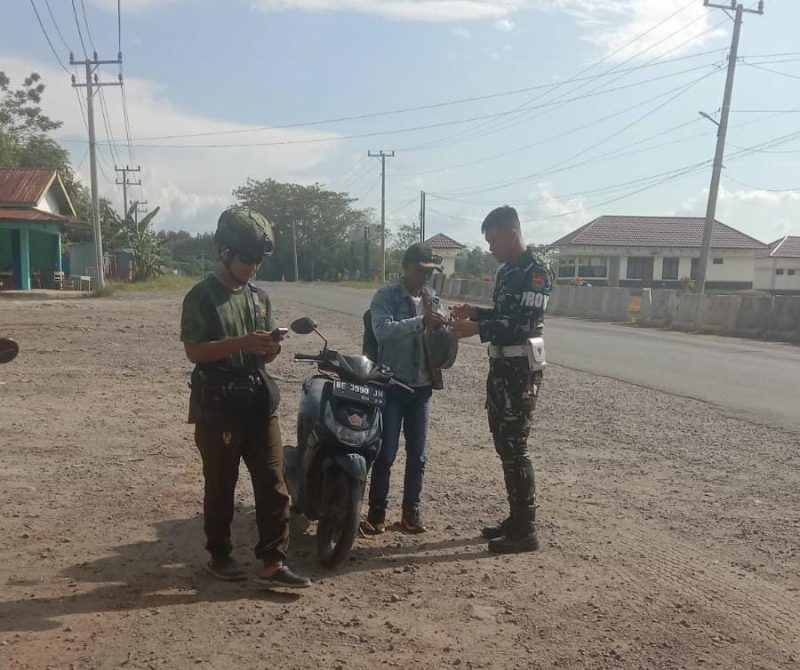 Aksi humanis ditunjukkan tiga prajurit TNI AD dari Batalyon Infanteri Teritorial Pembangunan 892/Vira Saudara (Yonif TP 892/VS) Way Kanan saat membantu seorang warga yang mengalami musibah di jalan, tepat di depan Markas Komando Yonif TP 892/VS di Jalinsum Way Kanan.