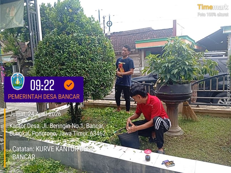 Semangat gotong royong kembali ditunjukkan oleh jajaran Pemerintah Desa Bancar. Pada Jumat pagi (24 April 2026), para perangkat desa melaksanakan kegiatan kurve atau kerja bakti kebersihan di lingkungan Kantor Desa Bancar, Jalan Beringin No. 1.