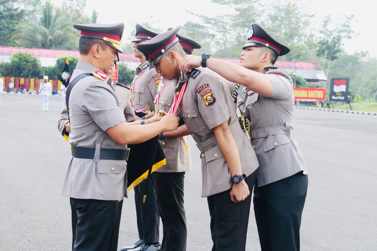 Kapolda Sumsel Irjen A Rachmad Wibowo yang membacakan amanat Kalemdiklat Polri Komjen Pol Drs Purwadi Arianto Msi mengucapkan selamat kepada ratusan Bintara Polri yang telah lulus pendidikan dengan menyandang pangkat Brigadir Polisi Dua (Bripda), agar menjadi sosok Polri yang Presisi sebagai pelindung, pengayom dan pelayan masyarakat.