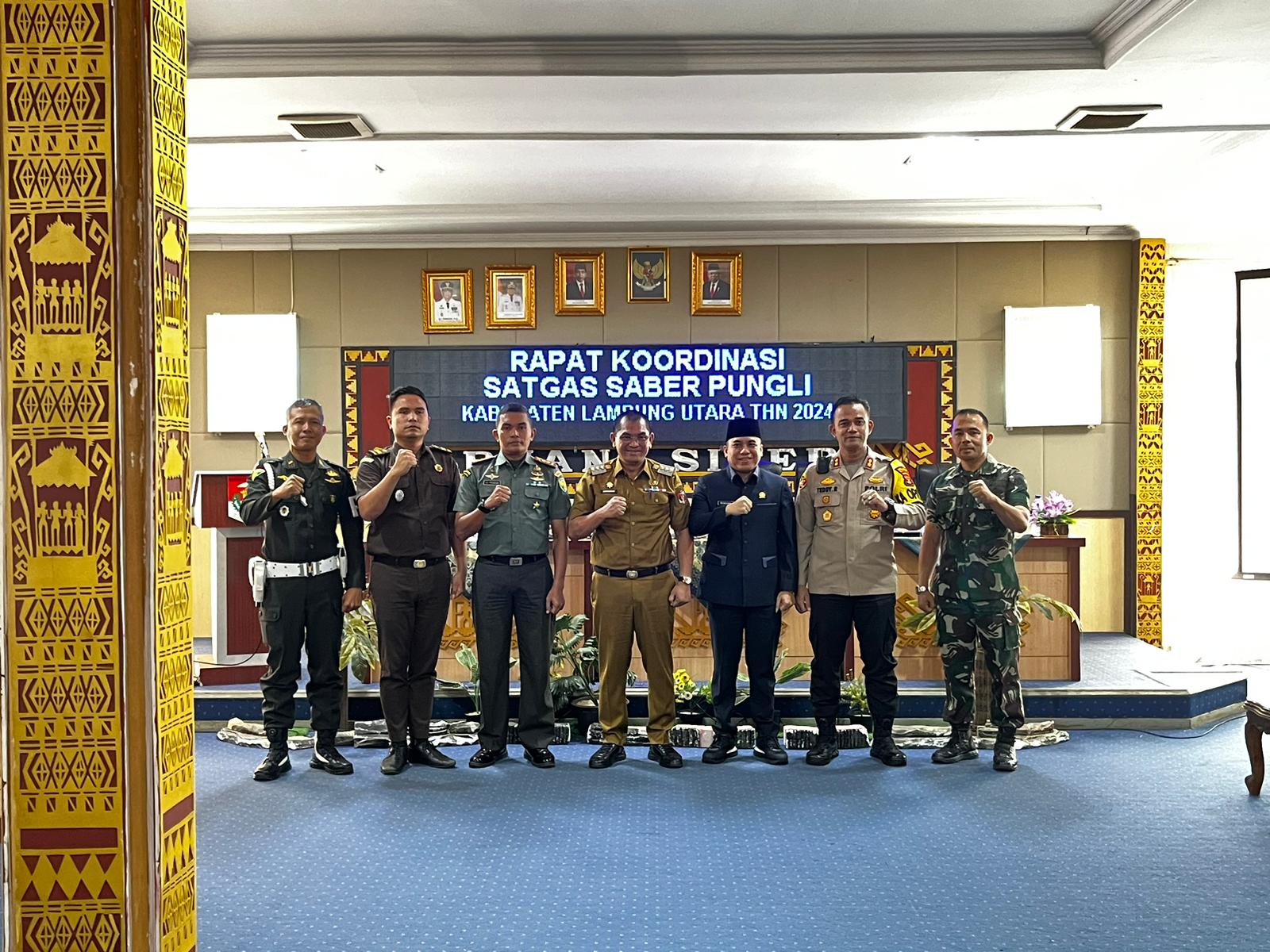 Kepala Kepolisian Resor (Kapolres) Lampung Utara AKBP Teddy Rachesna, S.H., S.I.K., M.Si. menghadiri Rapat Kordinasi Satgas Sapu Bersih Pungutan Liar (Saber Pungli) Kabupaten Lampung Utara yang bertempat di Aula Siger Pemda setempat, Selasa (30/7/24).