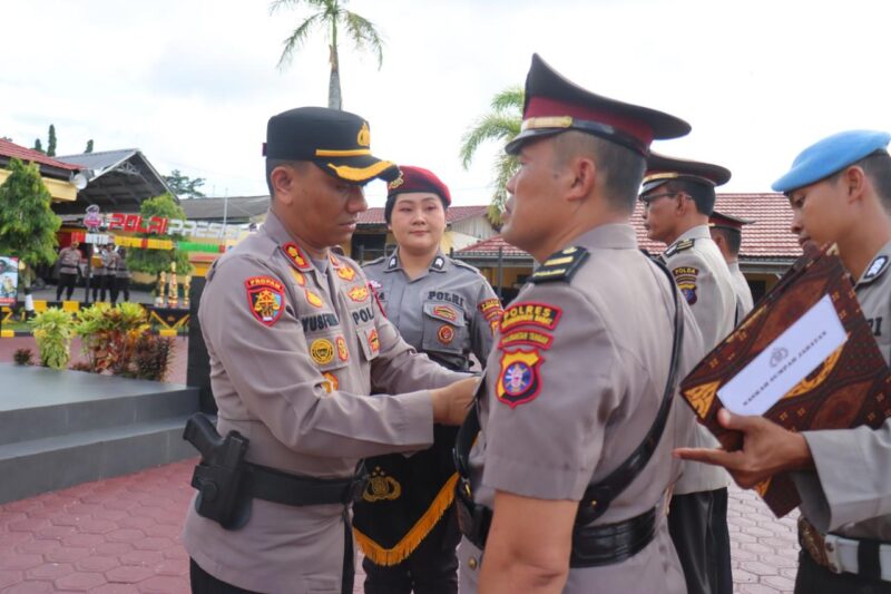 “Kepada pejabat baru saya berpesan agar segera menyesuaikan ritme pelaksanaan tugas, kenali wilayah dinas dan rangkul masyarakat,” imbau Kapolres.