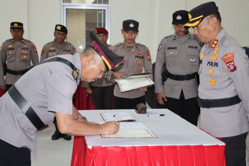 Kapolres lamandau, AKBP Bronto Budiyono, S.I.K, memimpin pelaksanaan serah terima jabatan (sertijab) Kabag Ops, Kabag Sdm dan Kapolsek Lamandau di Aula Aula Tantya Sudirajati Polres lamandau. jumat (5/07/2024) pagi