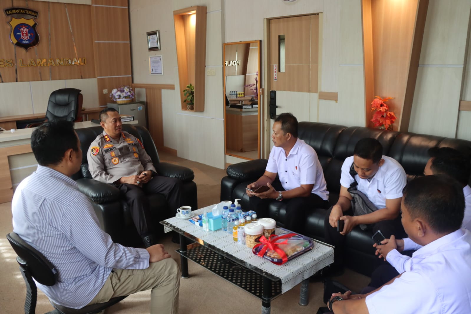 Rombongan dari Tim Bidkum Polda Kalteng terdiri dari Kasubbidbankum Bidkum Polda Kalteng Kompol Ahmad Mustofa N, S.H., M.AB., Ps. Kaursunkum Polda Kalteng Iptu Agus Nur Setiawan, SH. Ps. Paurluhkum Polda kalteng Aipda Petran N.Saputra, S.H, Bamin Subbidsunluhkum Bripka Rhomatin Syaufi dan Bamin Subbidsunluhkum Affuru W. Saingan, S.H., M.H. Polda Kalteng.