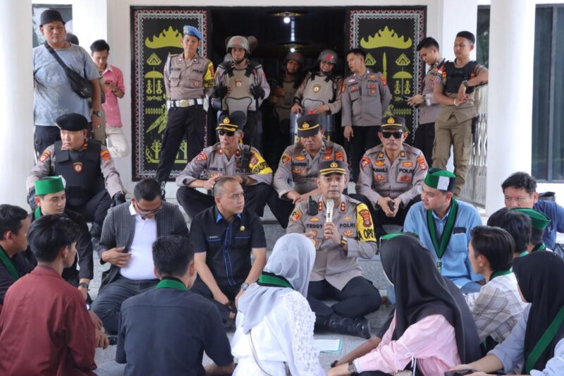 “Saya ucapkan terimakasih kepada peserta aksi yang sudah melakukan giat penyampaian pendapat dengan baik dan tertib,” kata Kapolres saat di lokasi.