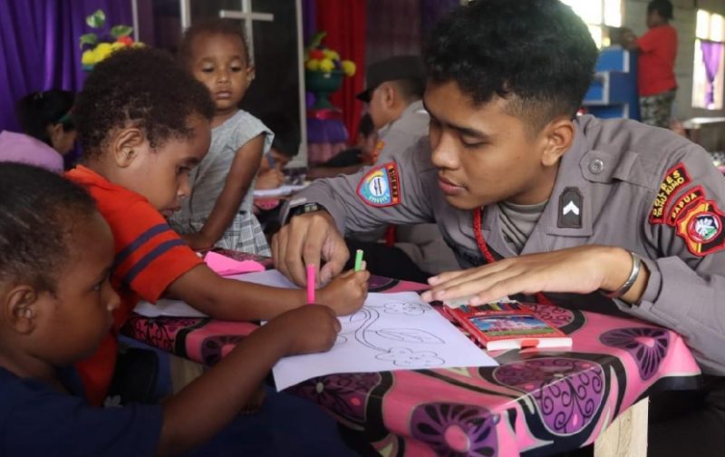 Kehadiran personel Satgas Humas Ops Damai Cartenz yang dipimpin oleh Kasubsatgas PID Ipda Andi Mappanyompa, S.H., didampingi Brigpol Marthen Luther Emauri, Bripda Rahmad Fajar, Bripda Annisa Mahardika, dan Bripda Adnan Maulana, disambut antusias oleh anak-anak serta pengurus gereja. Suasana hangat dan penuh keakraban langsung terasa sejak awal kegiatan, mencerminkan hubungan harmonis antara aparat keamanan dan masyarakat.