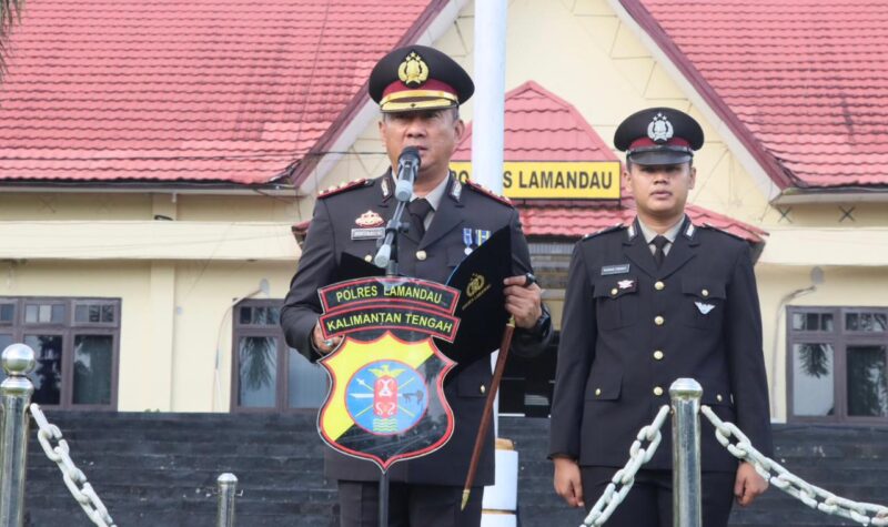 Kapolres lamandau AKBP Bronto Budiyono, S.I.K membacakan Pancasila yang ditirukan oleh seluruh peserta upacara, yang dihadiri oleh para PJU Polres lamandau dan seluruh anggota Polres lamandau.