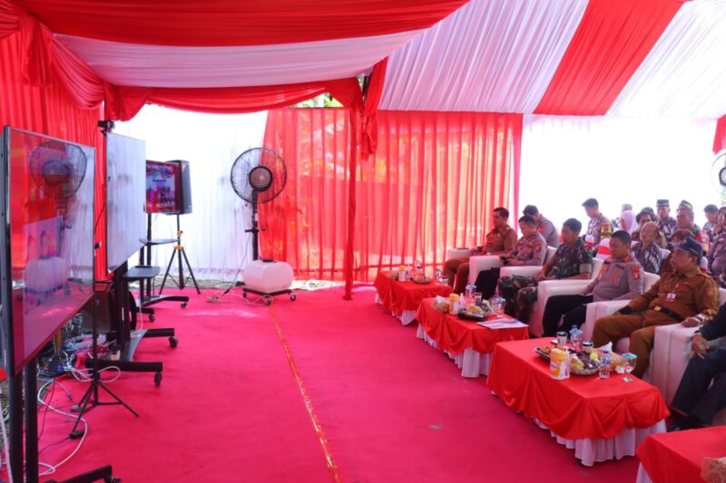 Kapolres Kotawaringin Barat (Kobar) AKBP Yusfandi Usman, S.I.K., M.I.K., bersama Ketua Bhayangkari, FKPD Kab. Kobar, Wakapolres Kobar serta PJU Polres Kobar dan tamu undangan mengikuti kegiatan vicon serentak bersama Kapolri terkait bantuan sosial dalam rangka hari bhayangkara ke – 78.