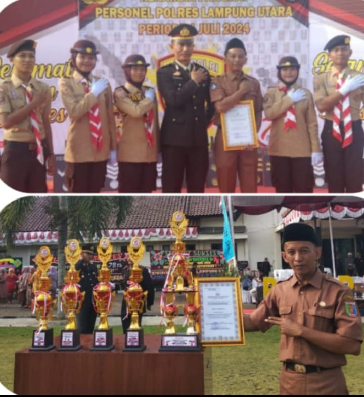 Polres Lampung Utara peringati hari Bhayangkara yang ke-78, menggelar upacara dan syukuran serta pemberian piagam penghargaan kepada sekolah bertempat di mapolres setempat pada hari senin (1/7/24)