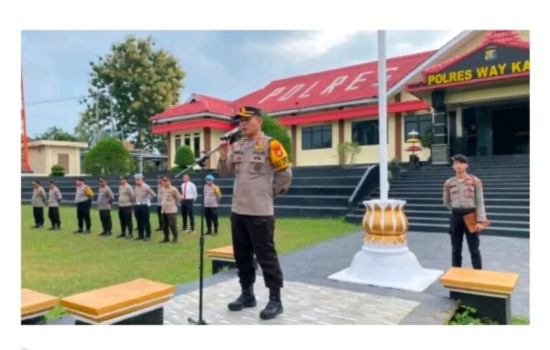 Personel Polres Way Kanan diingatkan kembali oleh Wakapolres Way Kanan Kompol Iwan Setiawan dalam pelaksanaan tugas Kepolisian tidak melakukan pelanggaran saat pelaksanaan apel pagi jam pimpinan di Mapolres setempat pada senin 3 januari 2025.