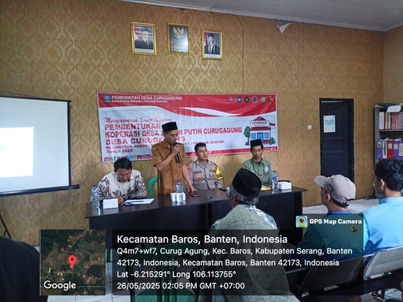 Desa Curugagung, Kecamatan Baros, Kabupaten Serang, Banten, menggelar (MUSDESUS) Musyawaeah Desa Khusus pembentukan Pengurus Koperasi Merah Putih di Aula kantor Desa Curugagung, Senin 26 Mei 2025.