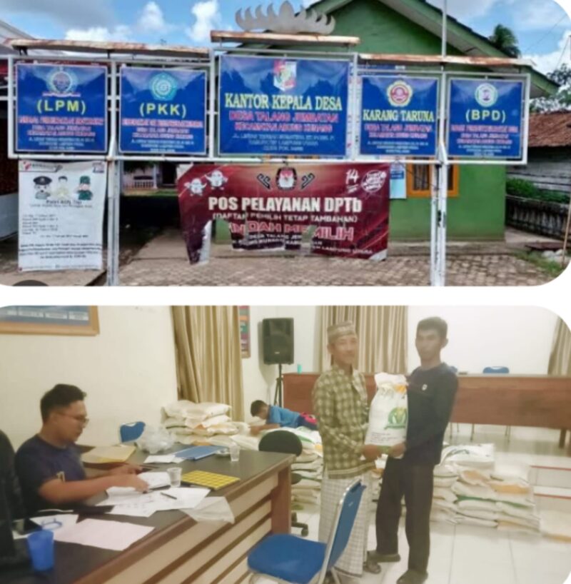 Pemdes desa Talang Jembatan melakukan kegiatan penyaluran bantuan pangan berupa beras 10 Kg yang bertempat di Kantor Desa Talang Jembatan, bantuan ini diberikan kepada penerima manfaat (KPM) yang kurang mampu selasa (13/8/2024).