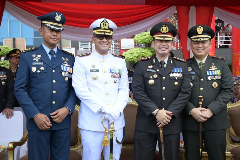 Komandan Pangkalan TNI Angkatan Laut (Danlanal) Palembang, Kolonel Laut (P) Sandy Kurniawan bersama Ketua Jalasenastri Cabang 5 Korcab III DJA I, Ny. Ervina Sandy Kurniawan menghadiri upacara dan syukuran peringatan HUT Bhayangkara ke-78 di Lapangan Polda Sumatera Selatan (Sumsel), Senin (01/07/2024).