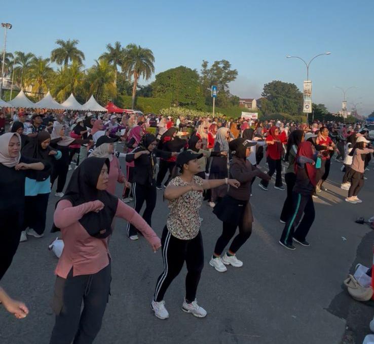 Kemeriahan diawali dengan sesi zumba energik yang diikuti peserta lintas usia, mulai dari anak-anak hingga lansia. Selanjutnya, peserta mengikuti Senam Jantung Sehat guna menjaga kebugaran tubuh serta meningkatkan fungsi organ vital seperti jantung dan paru-paru dalam menyalurkan oksigen ke seluruh tubuh.