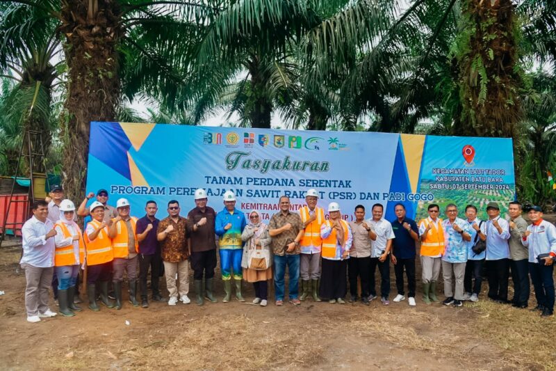 Penjabat (Pj) Bupati Batu Bara H. Heri Wahyudi Marpaung, S. STP, M.AP bersama Direktur Jenderal Perkebunan Heru Tri Widiarto melaksanakan penanaman perdana program Peremajaan Sawit Rakyat (PSR) dan penanaman padi gogo, di Desa Laut Tador, Sabtu (07/09/2024).