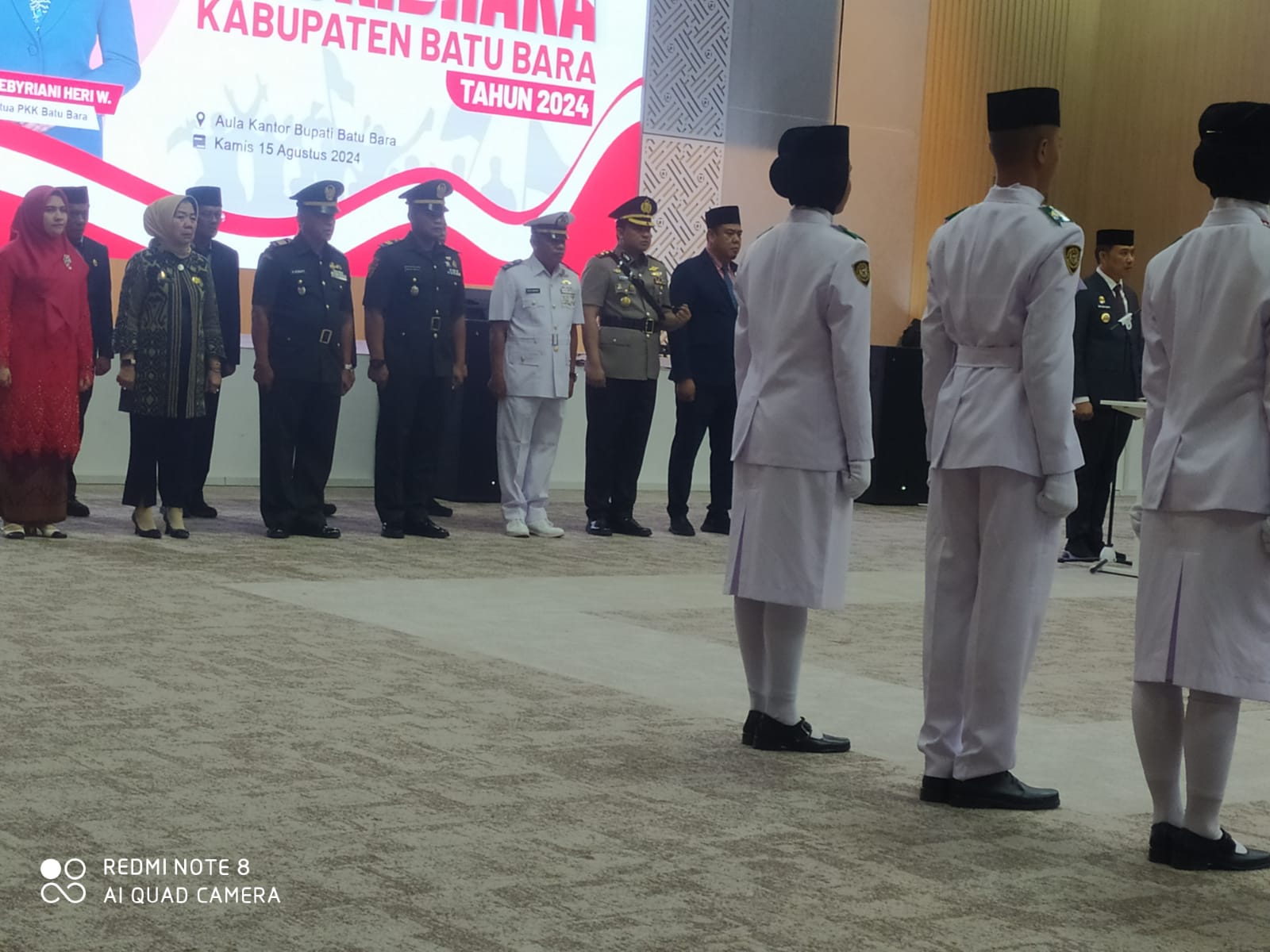 Pj. Bupati Batu Bara Heri Wahyudi Marpaung, S.STP, M.AP., secara resmi mengukuhkan 44 anggota Pasukan Pengibar Bendera Pusaka (Paskibraka) tingkat Kabupaten Batu Bara tahun 2024. Pengukuhan yang berlangsung penuh khidmat ini dilaksanakan di Aula Kantor Bupati, Kecamatan Lima Puluh, Kamis (15/08/2024).