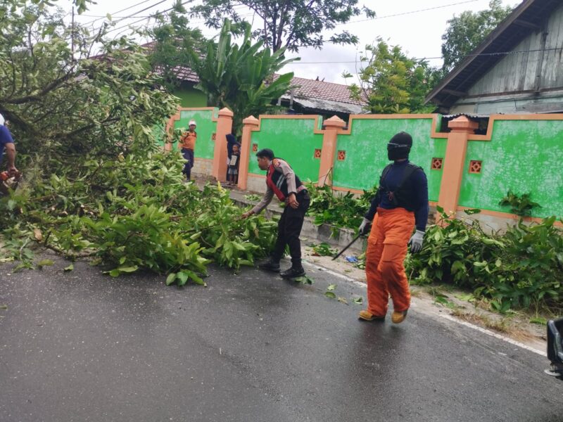 Respon Cepat Polres Kobar Bantu Evakuasi Pohon Tumbang Yang Mengganggu Arus Lalu Lintas