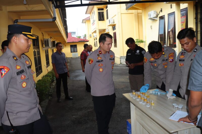 Polres Kotawaringin Barat jajaran Polda Kalteng kembali melakukan tes urine dadakan kepada personelnya, Selasa (18/6/2024) pagi.