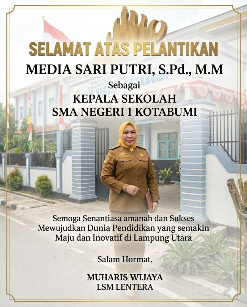 Semoga amanah ini senantiasa diberikan kelancaran, kebijaksanaan, dan keberkahan dalam memimpin, serta mampu membawa SMA Negeri 1 Kotabumi semakin maju, berprestasi, dan menginspirasi.