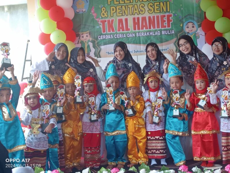 Puluhan anak-anak TK Al – Hanief Desa Rejo Mulyo Kelurahan Kelapa Tujuh, ikut serta dalam acara Pentas Seni dan Pelepasan TK Al – Hanief Tahun ajaran 2023 / 2024 yang berlangsung dihalaman TK Al- Hanief Desa Rejo Mulyo, Kecamatan Kelapa Tujuh, Selasa (11/6/2024).