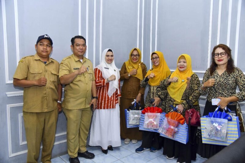 Penjabat (Pj) Ketua Tim Penggerak Pemberdayaan Kesejahteraan Keluarga (TP PKK) Kabupaten Batu Bara Ny. dr. Febyriani Heri Wahyudi bersama para Kepala OPD menyambut kedatangan Tim Evaluasi TP PKK Provsu di Desa Percontohan Usaha Peningkatan Pendapatan Keluarga (UP2K) PKK 2024 di Desa Bangun Sari, Kecamatan Datuk Tanah Datar, Selasa (07/08/2024).