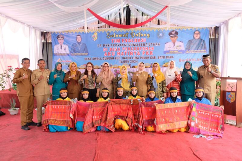 Penjabat Bupati Batu Bata H. Heri Wahyudi Marpaung, S. STP, M.AP yang diwakili oleh Sekda Norma Deli Siregar bersama para Kepala OPD dan Camat Datuk Lima Puluh menyambut tim evaluasi TP PKK Provinsi Sumatera Utara di Desa Percontohan Aku Hatinya PKK Desa Kwala Gunung, Kecamatan Datuk Lima Puluh, Selasa (06/08/2024).