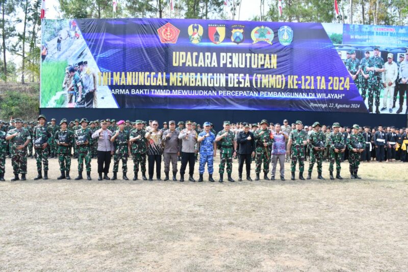 Kasdam V/Brawijaya Brigjen TNI Endro Satoto SIP, MM, M.Han tadi pagi menjadi Inspektur Upacara (Irup) pada Upacara Penutupan Program TNI Manunggal Membangun Desa (TMMD) ke 121 bertempat di lapangan Ngasinan Desa Selur Kecamatan Ngrayun Kabupaten Ponorogo, Kamis (22/08/2024).