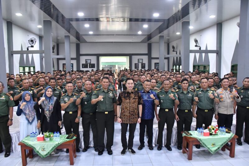 Dandim (Komandan Kodim) 0802/ponorogo Letkol Inf Dwi Soerjono menyambut kedatangan Anggota DPR RI Dr. Edhie Baskoro Yudhoyono, M. Sc yang berkunjung ke Kodim 0802/Ponorogo, Selasa 3 Juni 2025.