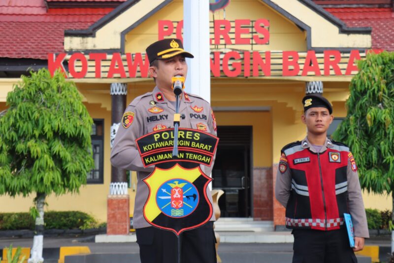 Wakapolres Kotawaringin Barat Kompol Wihelmus Helky, S.I.K.,M.I.K. memimpin jalanya apel pagi di Halaman Polres Kobar. Selasa/ 18/06/2024 Pagi.